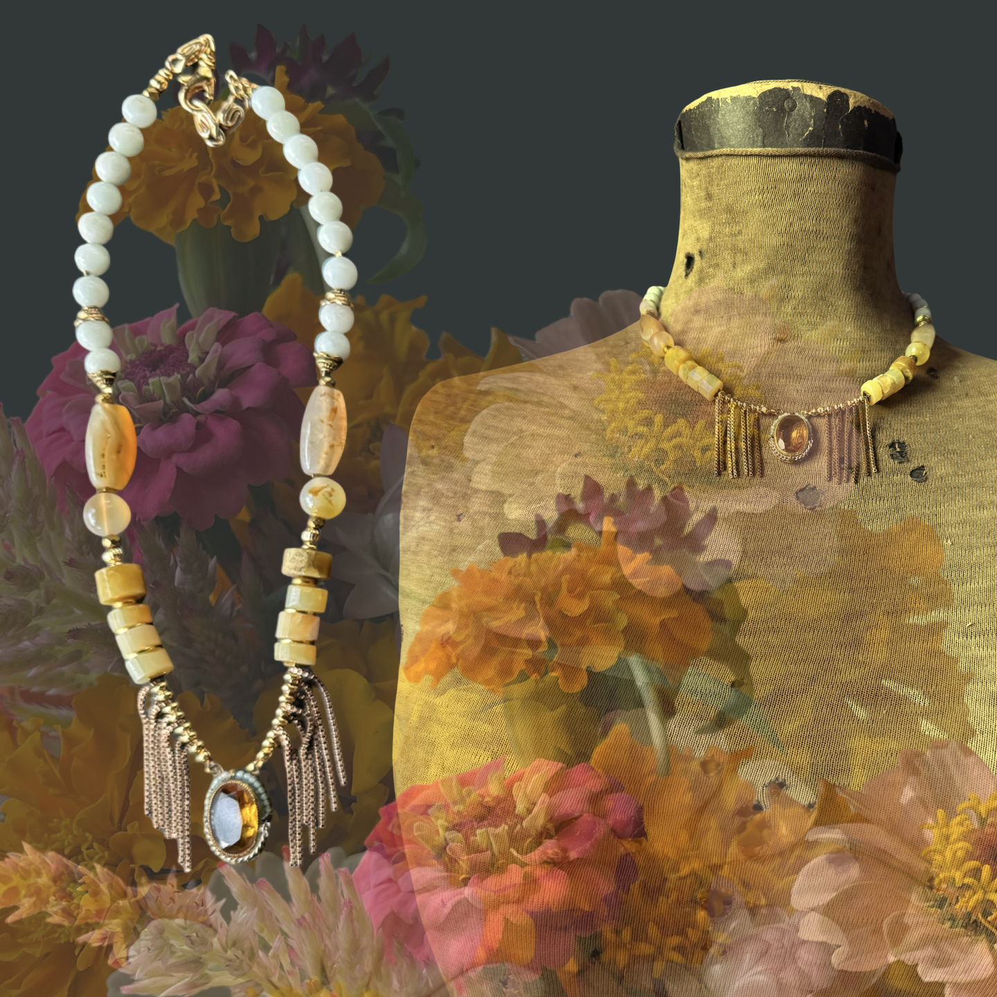 Categories: Select a Category black charms green pink heart Purple quills drip red vintage Flower Stone Yellow Blue Earrings Necklaces black | charms | green | pink | heart | Purple | quills | drip | red | vintage | Flower | Stone | Yellow | Blue | Earrings | Necklaces | Yellow opal necklace with aquamarine, chalcedony, gold fringe and vintage Czech glass $128.00 Add To Cart Added! Black tourmaline stone collar necklace with rose quartz, faceted tourmaline, jadeite and gold chain $129.00 Add To Cart Added! Vintage Amber Pendant Necklace with Quartz $143.00 Add To Cart Added! Aquamarine stone collar necklace with faceted garnet and fire opal $142.00 Add To Cart Added! Blue Chalcedony Stone slab flower cluster earrings: Yellow and white flower dangle $72.00 Add To Cart Added! Blue Kyanite pendant necklace with vintage gold chain from $48.00 Select Style A B Add To Cart Added! Bluebell Flower Cluster Earrings: Faux Amber, Porcupine Quills $68.00 A B Add To Cart Added! Kyanite Quartz Collar Necklace: Two-Toned Gemstone Bib, Vintage Gold $117.00 Sold Out Sold Out Added! Scorpion Druzy Necklace/ November $117.00 Sold Out Sold Out Added! Yellow Fluorite earrings/Bold yellow flower earrings $58.00 Add To Cart Added! kyanite flower earrings $58.00 Add To Cart Added! Kyanite Rhinestone Collar Necklace $117.00 Sold Out Sold Out Added! Yellow flower earrings with Kyanite + Evil Eye $68.00 Add To Cart Added! Tangerine quartz + Fluorite/ Vintage Stone Necklace $144.00 Sold Out Sold Out Added! Moonstone collar necklace $136.00 Sold Out Sold Out Added! Quartz Heart/Vintage Stone Necklace $140.00 Add To Cart Added! Porcupine quill earrings || patchwork quills $39.00 Add To Cart Added! Blue lace agate flower earrings/ Single earring $32.00 A B C D Add To Cart Added! Pink Lucite Flower Earrings: Moss Agate, Vintage Chain Drip from $28.00 Select Style A B C D E F Add To Cart Added! Amazonite Sunstone Necklace $148.00 Sold Out Sold Out Added! Amazonite + the Pink Flower || Single earring collection from $29.00 Sold Out Select Style A B C D E Sold Out Added! Aquamarine Flower Feather Earring + the Cameo Feather || Single earring collection from $32.00 Sold Out Select Style A B C D Sold Out Added! Fuchsia Flower Earrings $44.00 Add To Cart Added! amethyst vintage flower necklace $150.00 Sold Out Sold Out Added! Mother Heart Charm Necklace $90.00 Add To Cart Added!