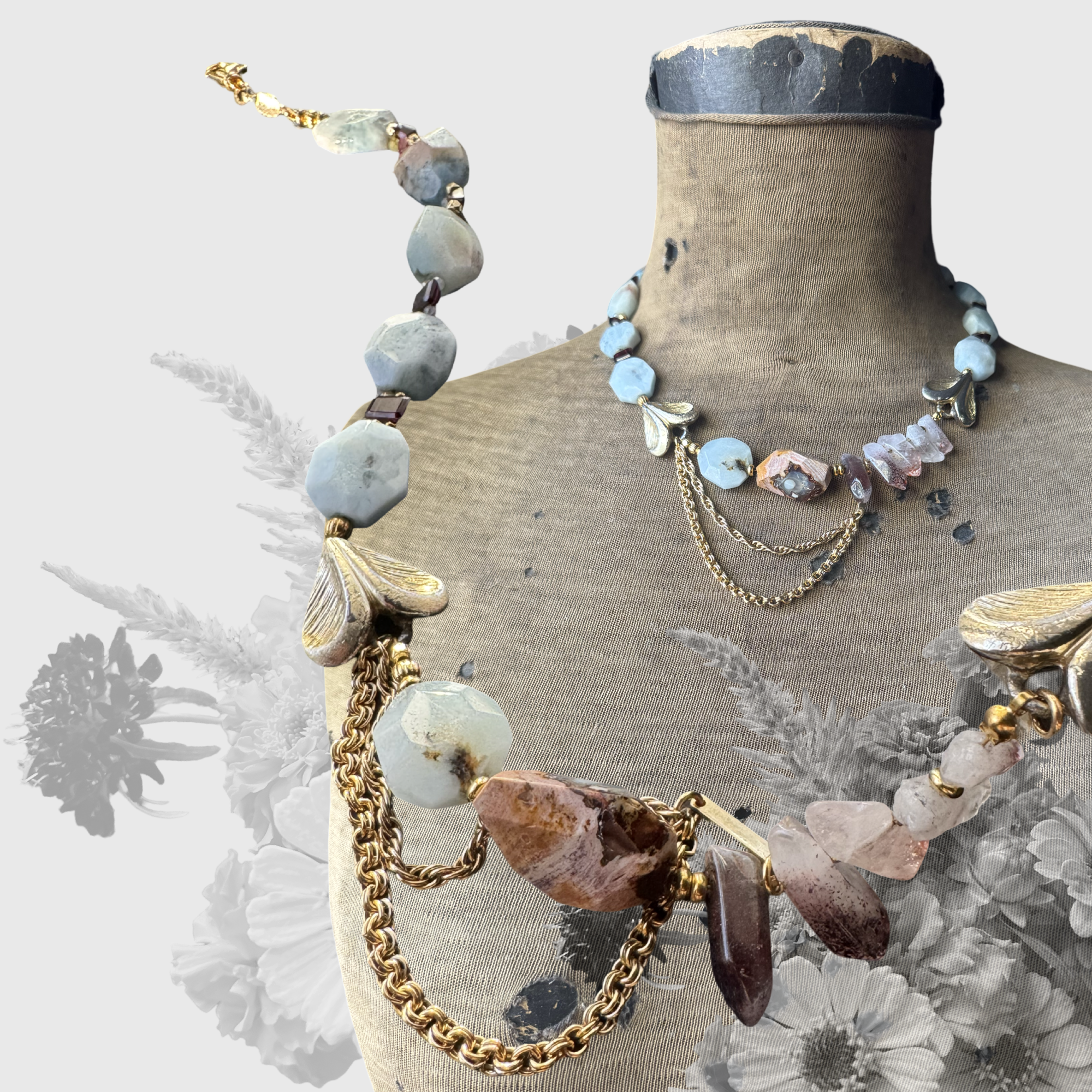 Necklaces Categories: Select a Category brooch black charms green pink heart Purple quills drip red vintage Flower Stone Yellow Blue Earrings Necklaces Blue green gemstone collar necklace with jadeite, apatite and aquamarine $122.00 Sold Out Sold Out Added! Yellow opal necklace with aquamarine, chalcedony, gold fringe and vintage Czech glass $128.00 Sold Out Sold Out Added! Black tourmaline stone collar necklace with rose quartz, faceted tourmaline, jadeite and gold chain $129.00 Sold Out Sold Out Added! Vintage Amber Pendant Necklace with Quartz $143.00 Add To Cart Added! Aquamarine stone collar necklace with faceted garnet and fire opal $144.00 Sold Out Sold Out Added! Blue Kyanite pendant necklace with vintage gold chain from $48.00 Select Style A B Add To Cart Added! Kyanite Quartz Collar Necklace: Two-Toned Gemstone Bib, Vintage Gold $117.00 Sold Out Sold Out Added! Scorpion Druzy Necklace/ November $117.00 Sold Out Sold Out Added! Kyanite Rhinestone Collar Necklace $117.00 Sold Out Sold Out Added! Mother Heart Charm Necklace $90.00 Add To Cart Added! Quartz Heart/Vintage Stone Necklace $140.00 Add To Cart Added! Tangerine quartz + Fluorite/ Vintage Stone Necklace $144.00 Sold Out Sold Out Added! Moonstone collar necklace $136.00 Sold Out Sold Out Added! amethyst vintage flower necklace $150.00 Sold Out Sold Out Added!